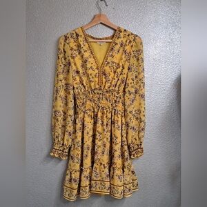 Max Studio Mustard Floral Long Sleeve Mini Dress Size M
