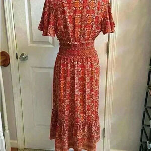 Max Studio NWT Red Floral Short Sleeve Maxi Dress Womens Size Medium
