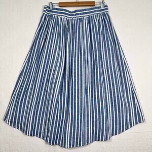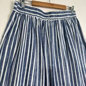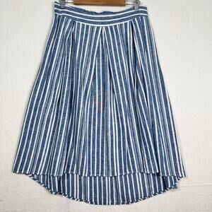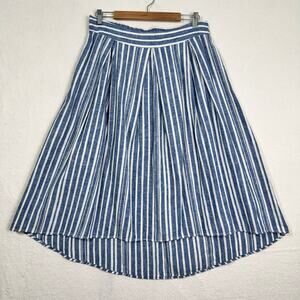 Max Studio Nautical Blue/White Stripe Chambray Linen Midi Skirt High-Low Large
