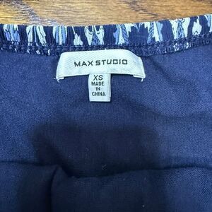 Elegant navy blue skirt with a beautiful floral pattern. Perfect for any occasion. Stretchy Waistband. Size XS.