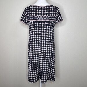 Max Studio Navy Blue & Peach Geometric Circle Print Short Sleeve Swing Dress XS