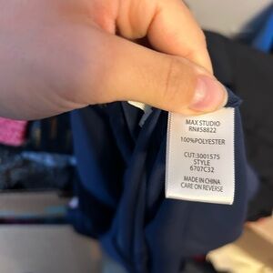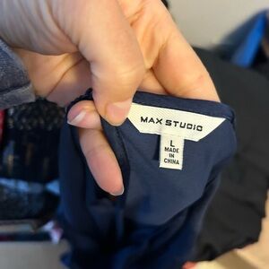 Max Studio Navy Blue Satin Bell Sleeve Blouse
