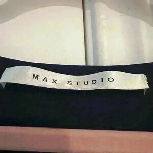 Max Studio Navy Short Sleeve 100% Silk Blouse- Size Small- EUC