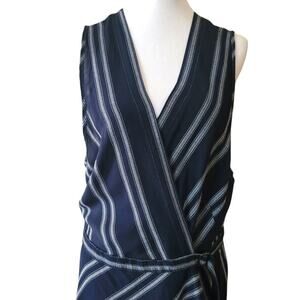 Max Studio Navy & White Striped Sleeveless Wrap Dress, XL, Nautical, Summer
