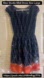 Stylish navy midi dress with chain pattern. Features bold orange hem. Ideal for versatile wear.