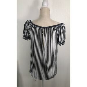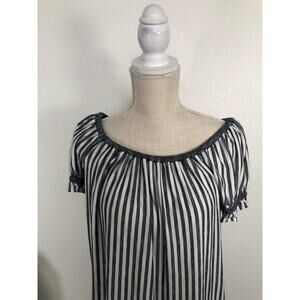Tags: Max Studio, Stripes, Navy, White, Ruffle, Basics, Off the Shoulder, Cap Sleeve