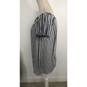 Max Studio Navy and White Off the Shoulder Ruffle Short Sleeve Top - S