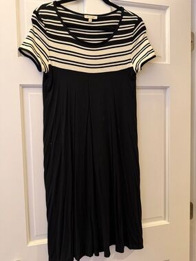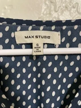 Max Studio Navy and White Polka Dot Midi Dress
