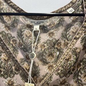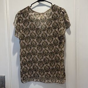 Chic blouse with intricate pattern. Features a flattering V-neck. Ideal for versatile styling.