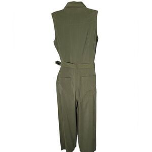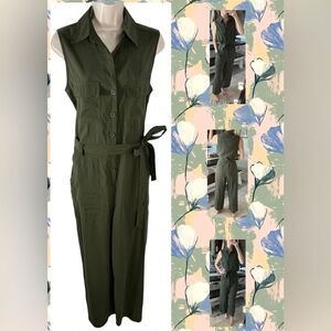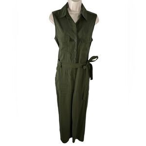Max Studio Olive Green Button Down Sleeveless Ankle Jumpsuit