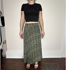Max Studio Paisley Green Midi Bohemian Skirt Size Medium