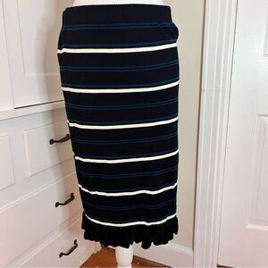 Max Studio Pencil Skirt Ruffle Hem Black Striped Detailing