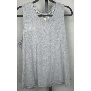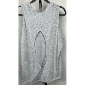 Max Studio Performance Top Sleeveless Peek-a-Boo Cutout Backless Scoop Neck Logos Heather Gray