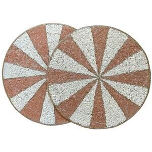 Max Studio Beaded Holiday Placemats Set of 2 Pink & White Candy Stripe New