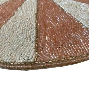 Max Studio Pink & White Candy Stripe Beaded Placemats 15in Set of 2 Holiday New