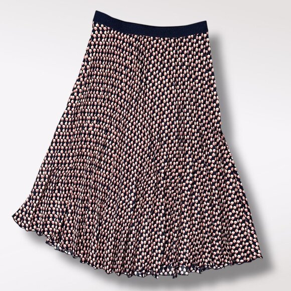 Max Studio Pleated Midi Skirt Navy Pink Floral Print Small