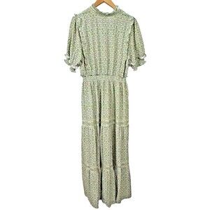 Max Studio Plus NWT Maxi Dress 1X Green Boho Floral Ruffle Milkmaid Cottagecore