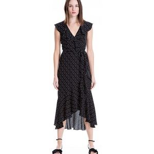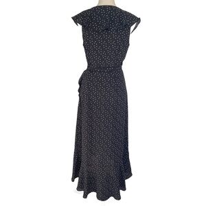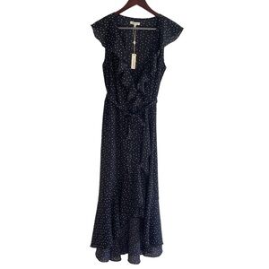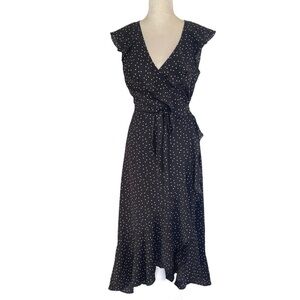 Max Studio Polka Dot Wrap Midi Dress Ruffle Neckline Belt Women’s Size S