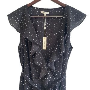 Max Studio Polka Dot Wrap Dress Ruffle Neckline Belt Women’s Size S