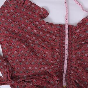 Max Studio Printed smocked waist, tie waist ruffle sleeve blouse