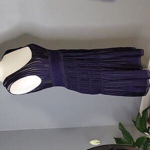Max Studio Pullover Stretchy Smocked Waist Lined Tiered Dark Purple Boho Dress in Size S