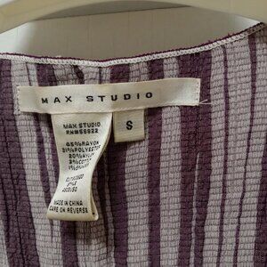This is a beautiful purple and gray dress with stretch features. The bodice is gathered with thin elastic and the areas that expand when it's worn show some of the gray from underneath. The skirt is fully lined. Size S. Worn once.