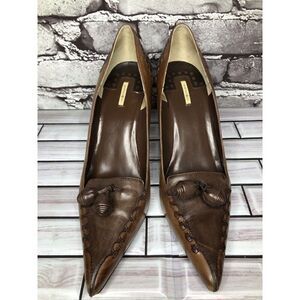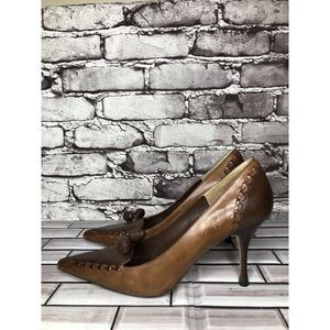 Selling Max Studio Quibble Brown Leather Pointed Toe Tassel High Heels Women Sz 8.5M US/39EU