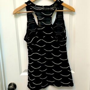 Gently loved soft racerback tank. Black with off white unique ruffling detail. Very pretty. #231