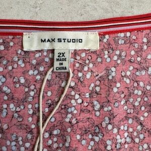 Max Studio Red Cherry Print Boho Balloon Long Sleeve Blouse. Size 2X
