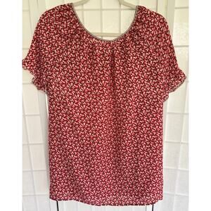 Max Studio Red Floral Peasant Blouse XXL Ruffle Tie Neck Balloon Sleeve Boho Top