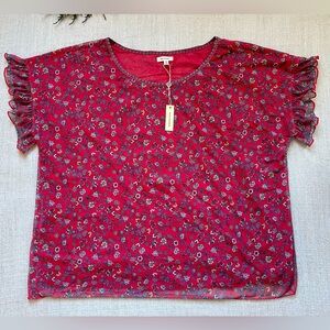Chic red top with floral pattern. Features ruffled sleeves. Perfect for casual wear. Reposhing because it was a little too big for me.