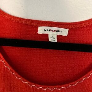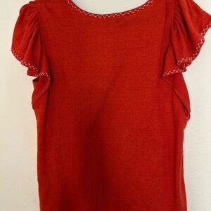 Elegant red blouse with flutter sleeves. Ideal for versatile styling.
