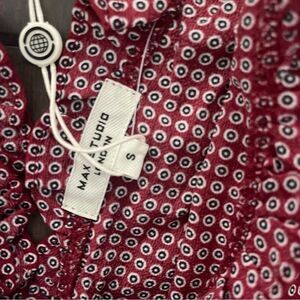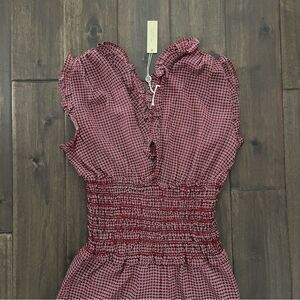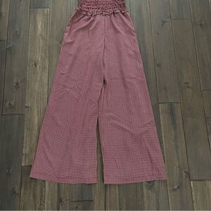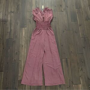 NWT Max Studio Red Patterned Ruffle Wide Leg Sleeveless V-Neck Smocked Waist Jumpsuit. Size S. Retail price $118.