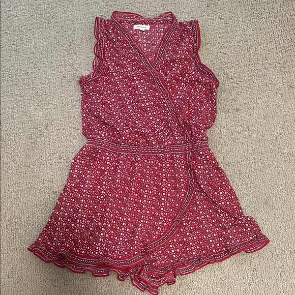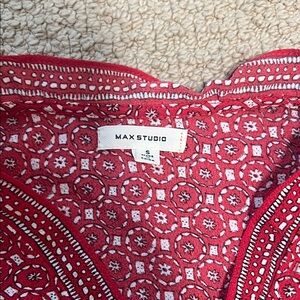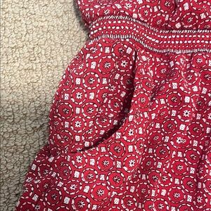 Stylish red top with intricate patterns. Ideal for any occasion. Skort romper with pockets. Smoke and pet free home