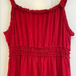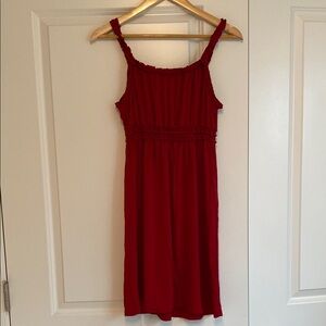 This vibrant red sundress by Max Studio features a stylish ruched design and a flattering spaghetti strap neckline. Perfect for casual outings or a night out, this sleeveless mini dress combines comfort and style effortlessly. Gently used.