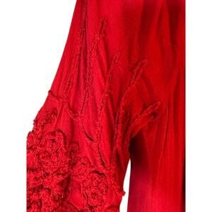 Max Studio Red Scoop Neck 3/4 Long Textured Sleeves Blouse Women Sz S