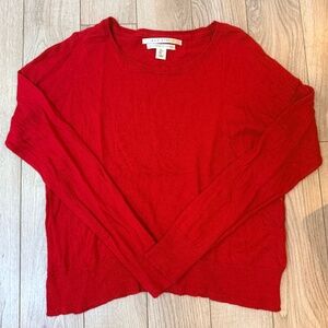 Max Studio Sweater in fine wool, vibrant red color. It is thin and very pretty in person, excellent preowned condition! Size L, no flaws seen and comes from a smoke free home Perfect for