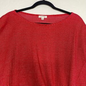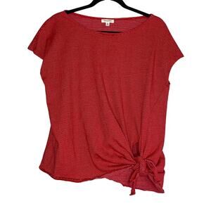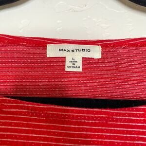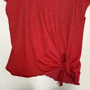 Max Studio Red and White Striped Asymmetrical Tie Front Blouse Size Large