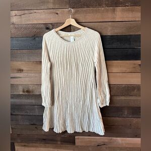 Max Studio Ribbed Knit Long Sleeve Sweater Dress – Modern A-Line in Cream