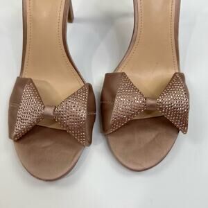 Max Studio Rorima2 Rose Gold Satin Embellished Bow Open Toe Heels Womens Size 11M