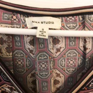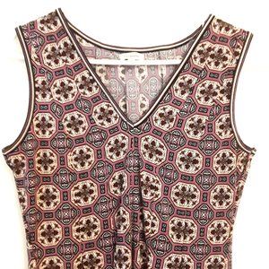 Max Studio Rose and Black Multi-patterned Sleeveless V-Neck Dress with pleats at waistline - Size S