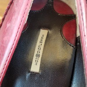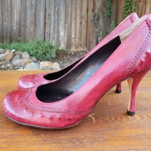 Max Studio Round Toe 1930's Style Raspberry Red Leather Pumps Women's Size 7.5