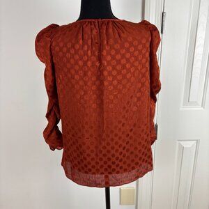 Max Studio Ruched Long Sleeve Rust Polka Dot Silky Blouse Size XS New