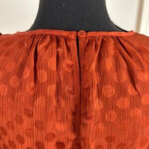 Max Studio Ruched Long SLeeve Rust Polka Dot Silky Blouse Size XS