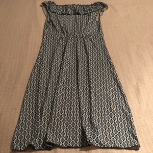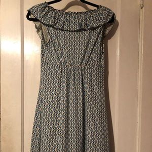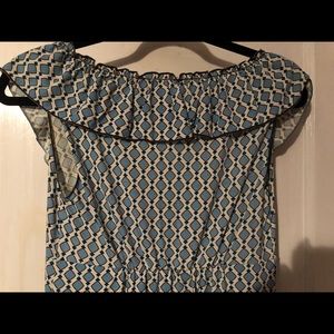 *Like New* Front/back ruffle neck, back center conch, blue/white, polyester/spandex