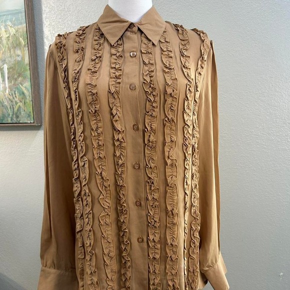 Max Studio Ruffle Front Button Down Blouse Tan - Size M