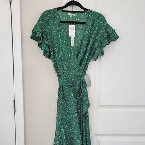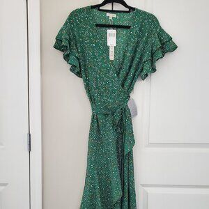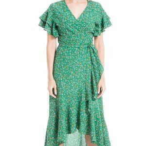Max Studio Ruffle Wrap Midi Dress Floral Green Stretchy Size S NWT