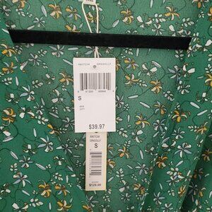 The Max Studio Ruffle Wrap Midi Dress in size S is a stylish and versatile choice for various occasions. The floral green pattern, V-neckline, and ruffle accents give it a feminine and elegant look. Made from a stretchy polyester and spandex blend, this dress is both comfortable and flattering. Perfect for summer, fall, and spring events, this wrap dress from Max Studio is a must-have for any fashion-forward woman's wardrobe.