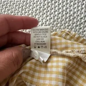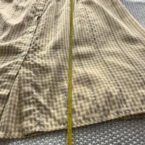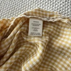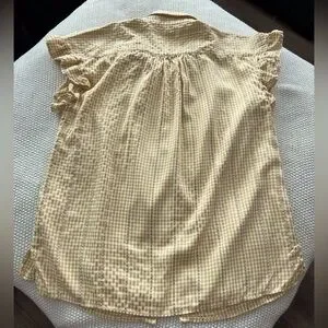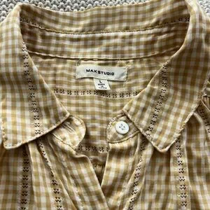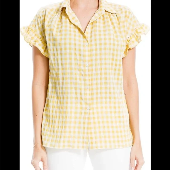 Elevate your style with this Max Studio top, showcasing a delightful yellow and white gingham pattern. The notched collar and ruffled sleeves add a touch of elegance to its relaxed fit, making it an ideal choice for casual outings.