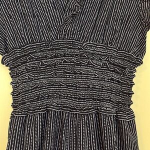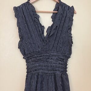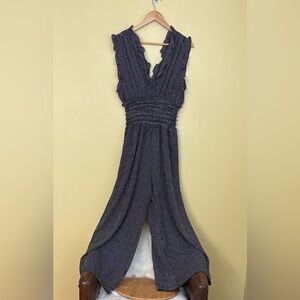 Max Studio | Ruffled Deep V-neck Wide Smocked Elastic Waist Wide Leg Jumpsuit M